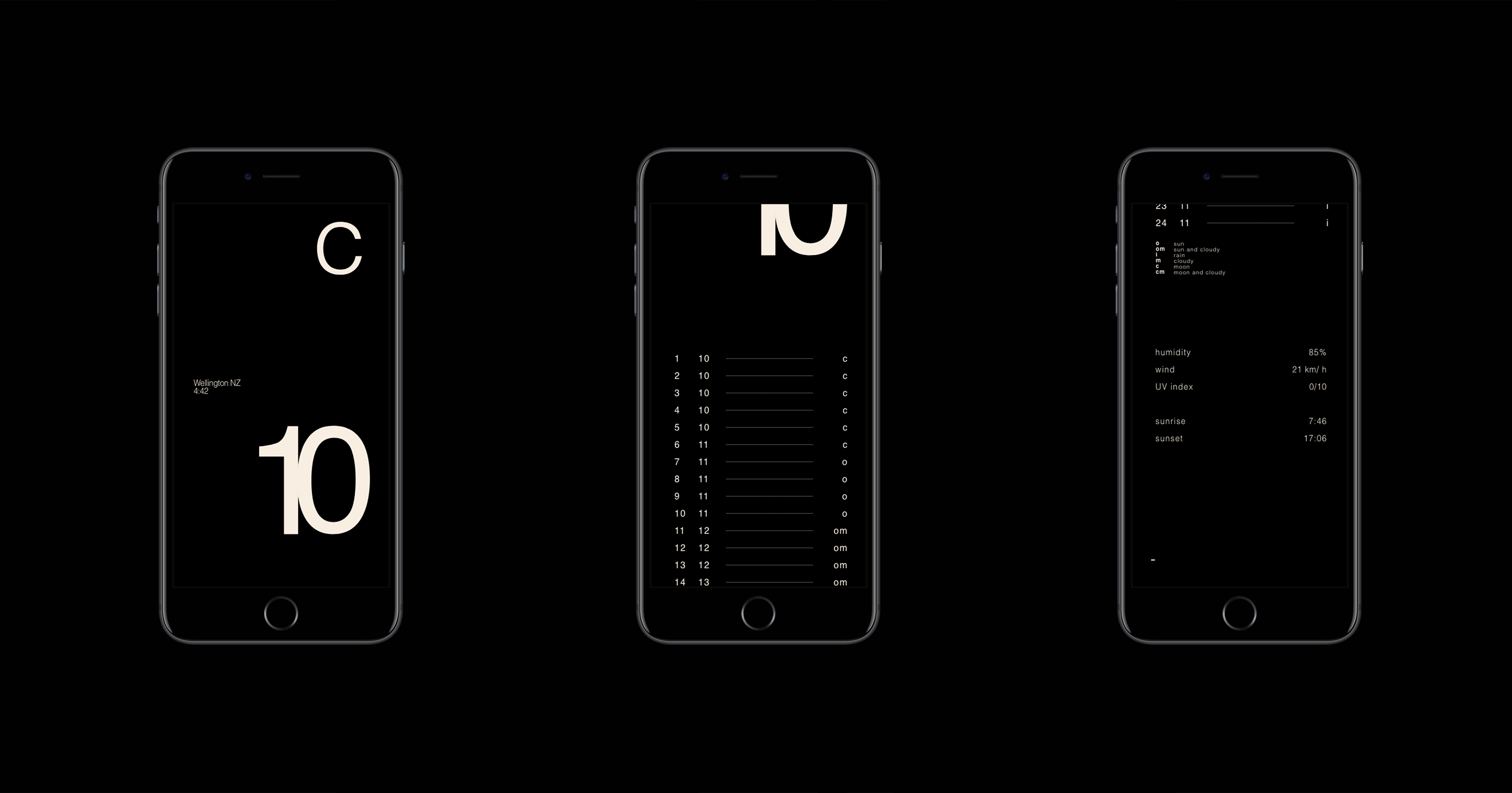 is a modern weather app. It was built with the intention to show the power of typography, by representing the weather using only typographical symbols and characters.